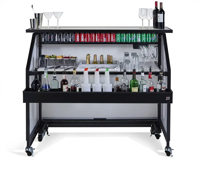 Arrange your bottles and glasses in a portable bar. A model for 10 bottles, which also has a shelf for glasses and cocktail shakers, will allow you to prepare drinks and cocktails anywhere in the room.