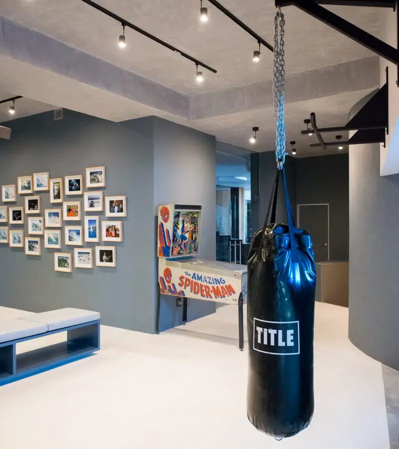 Release tensions, discharge energy and get fit by hanging a boxing bag in your man cave. Look for a package that includes a 100 lb. (45 kg) bag, a hanging device and gloves.