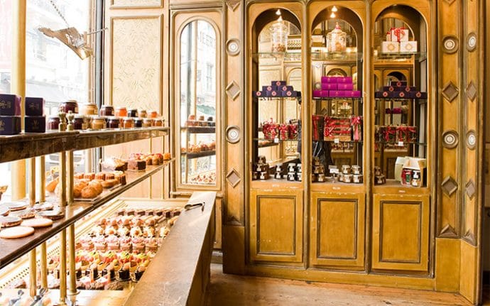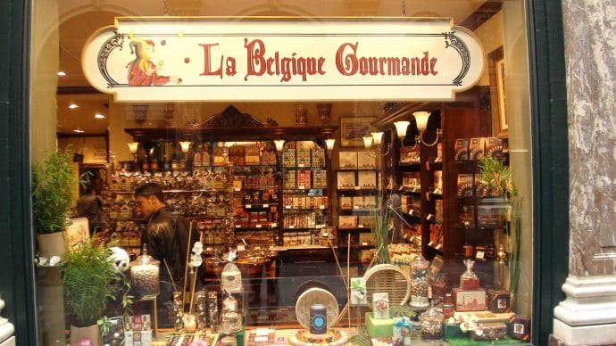 Once you enter the rich black building, the natural sunlight illuminates the shop, transporting you to vintage and opulent dimension that was once, and still is, a favorite of elites such as King Leopold I. Upon the shelves, you’ll find Méert’s infamous chocolates and caramels. But at the front, you must ask to try their signature gaufre waffles. Furthermore, you can enjoy their patisserie delights such as cakes and tarts in conjunction with your candy. Lastly, don’t forget to grab a cup of their coffee and seasonal tea before you leave as well.