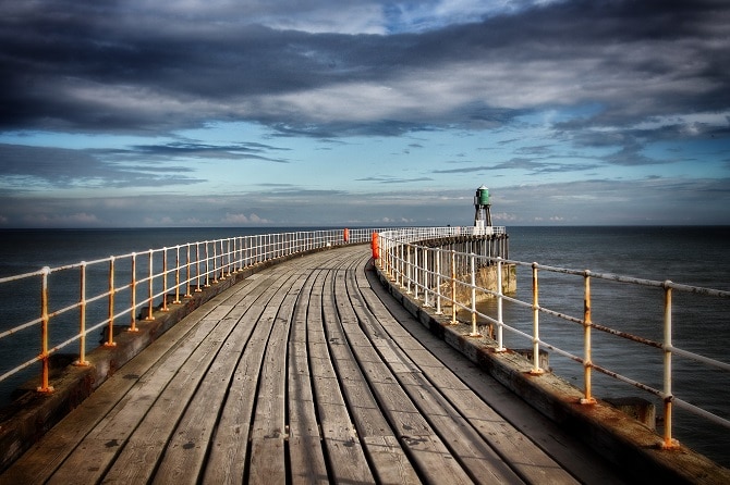 Whitby is another popular coastal town in North Yorkshire. One place that’s magically noteworthy about it is the piers which extends deep into the sea until a small lighthouse. The walk through the pier is very scenic and unforgettable. Click the next ARROW to see the next image!