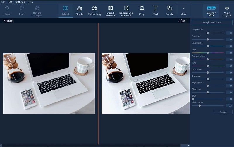 Movavi Photo Editor is known for being very user friendly and also for being a free program for Windows. One of its much praised features is the ability to enhance images with a single click. It’s called the Magic Enhance and allows you to improve the quality of any photo in a very simple step. However, Movavi also has advanced editing options such as color correction tools for total precision. These would require a bit more work on the user’s part but the results can be outstanding.