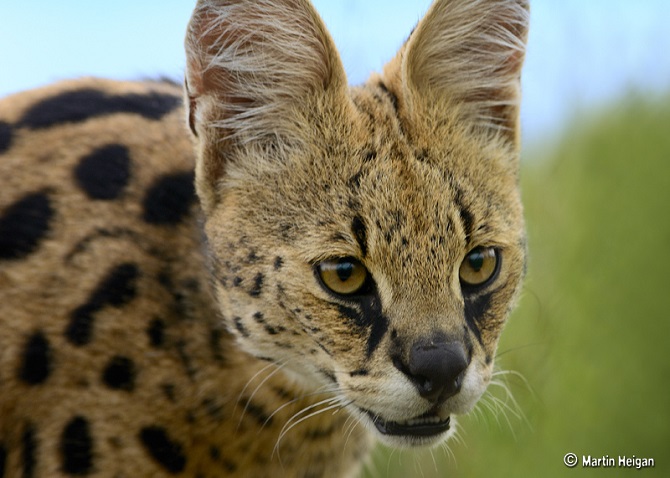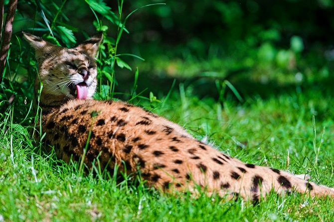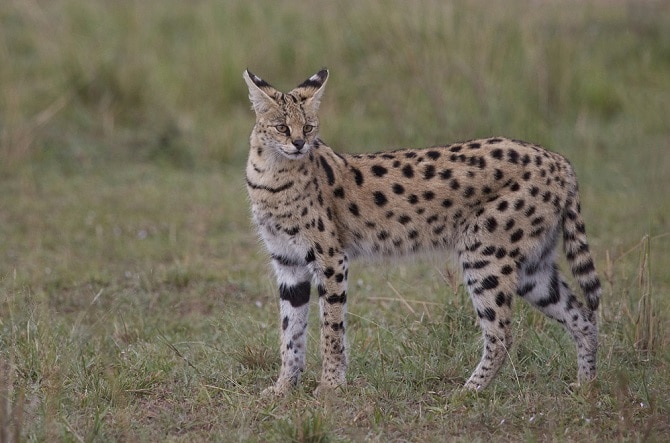 What sets the servals apart from other wild cats is their long body and their relatively small tails. What makes them so charming is their fur pattern which is a combination of black spots and stripes. It is unique for each serval and of them end up with very beautiful patterns.