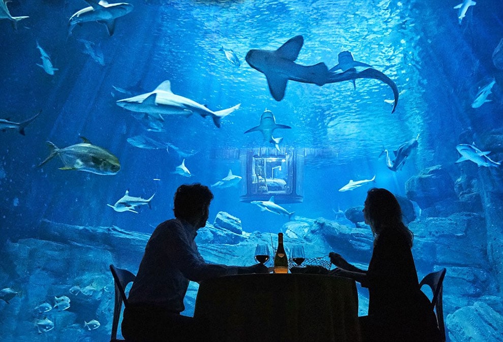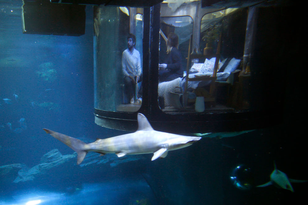 The unique room will be submerged in the shark tank of the aquarium (home to 35 of the deadly animals).
