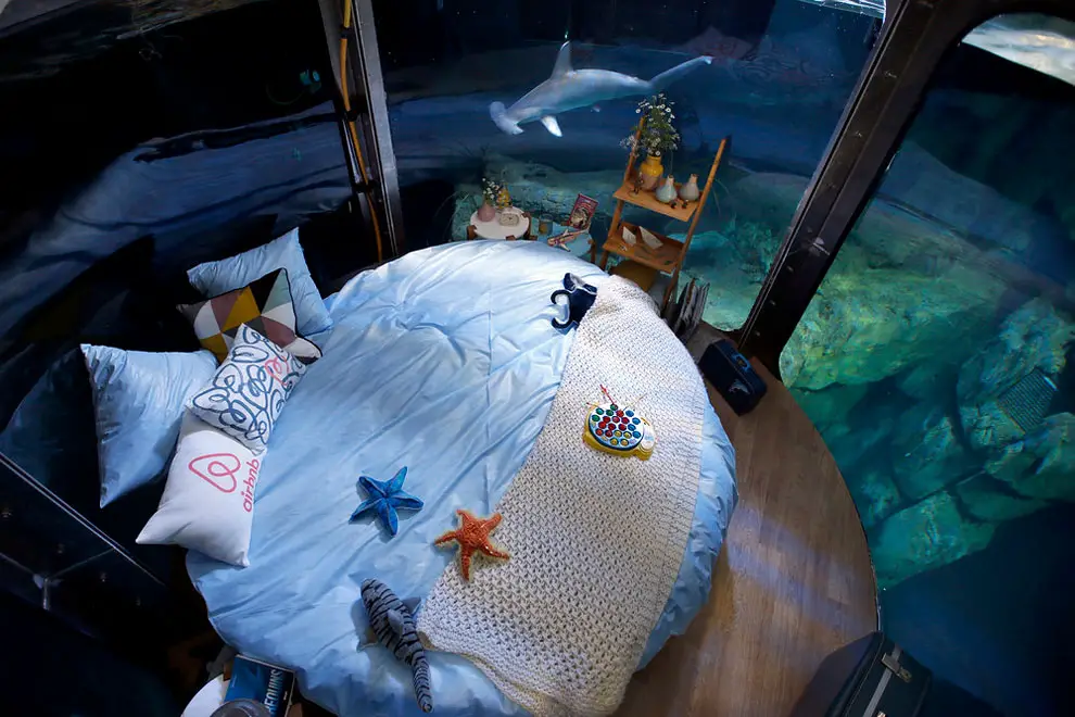 Wow, just wow – if you are a thrill-seeking tourist, you will soon be able to sleep with sharks surrounding you “only” bedroom when visiting the French capital (Paris). Aquarium de Paris is about to open up its doors and allow visitors to sleep in the world’s first underwater bedroom on Airbnb.