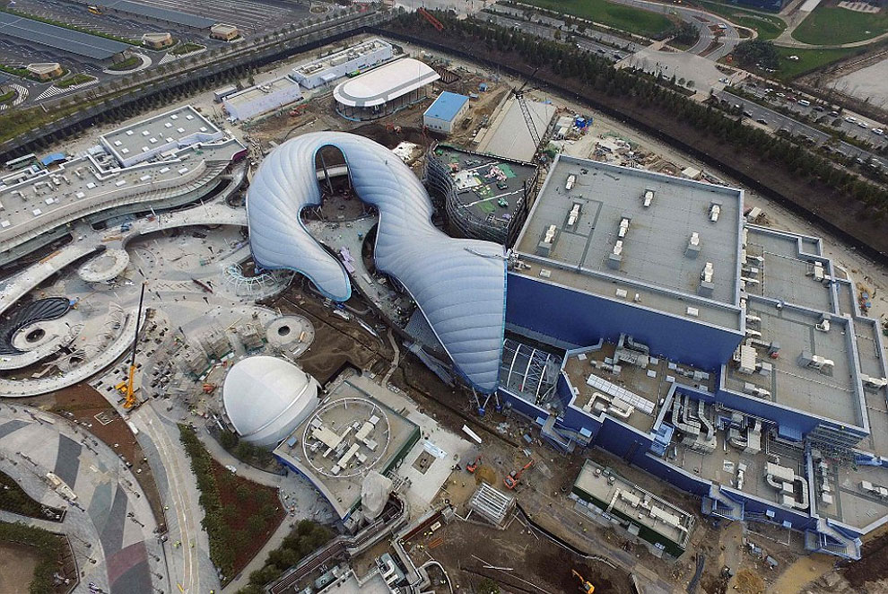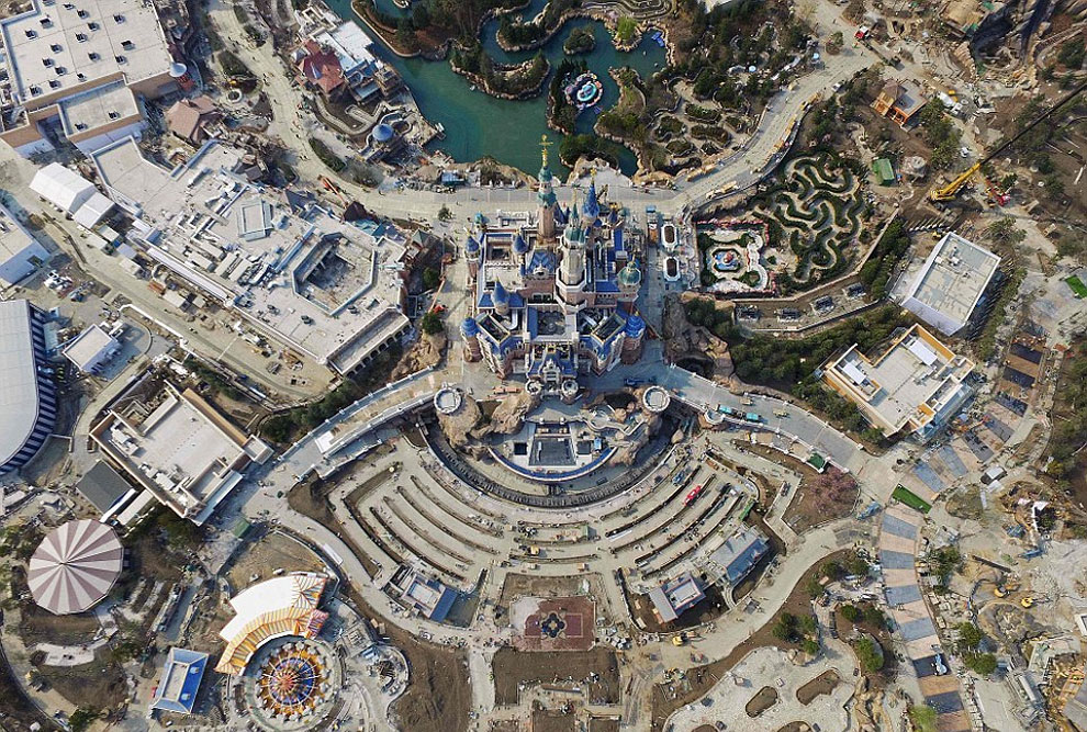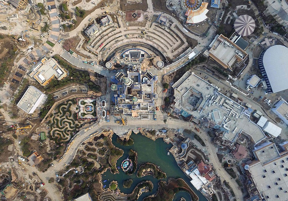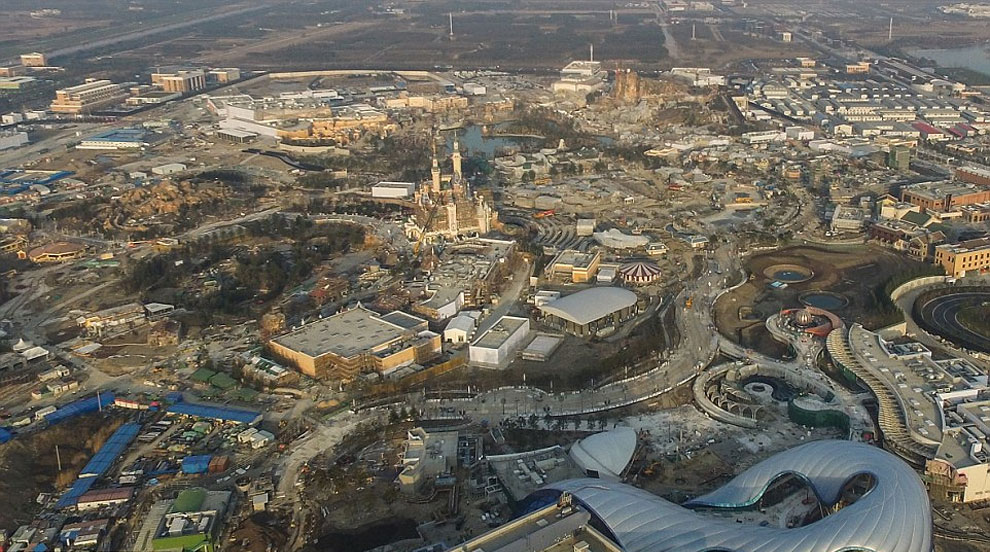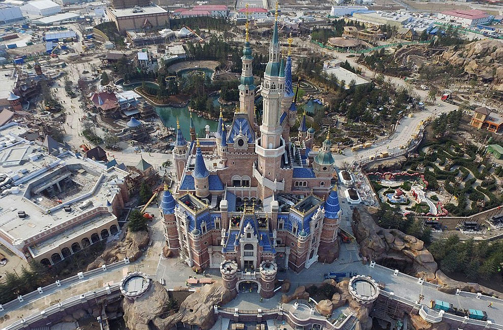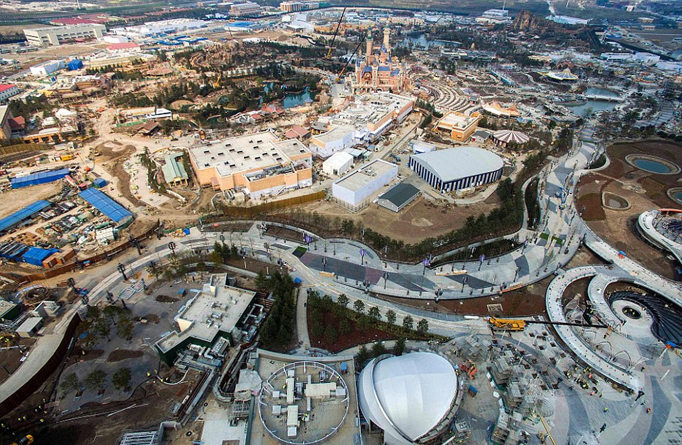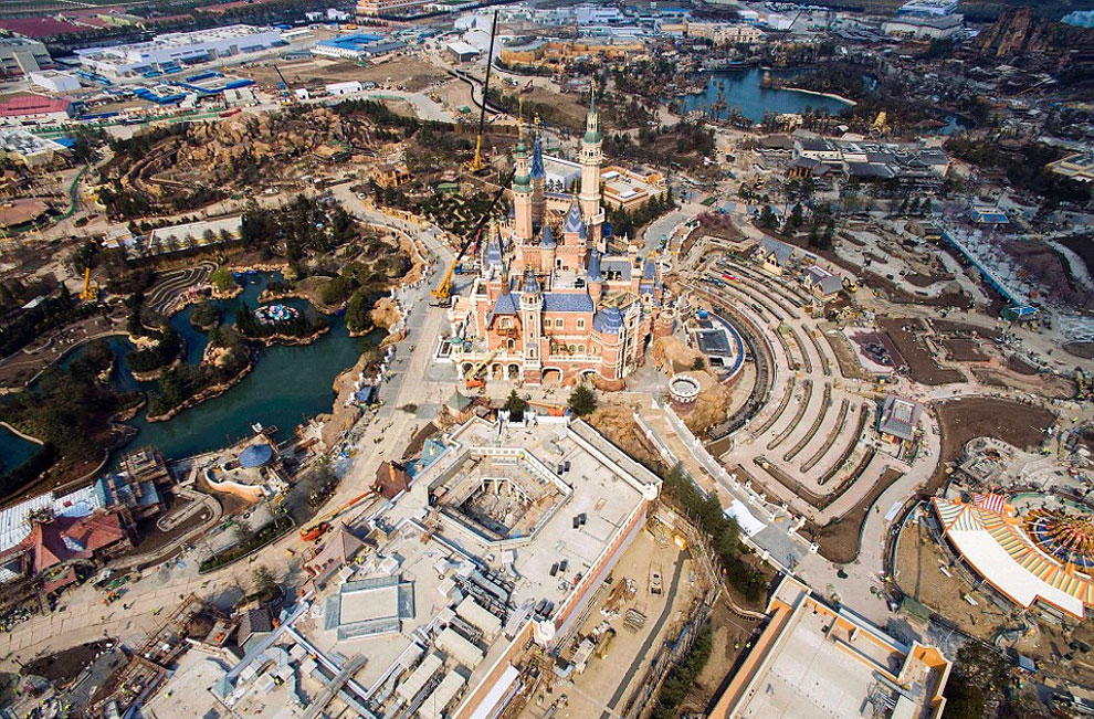 In total there are 4 Disneylands and 1 Disneyworld (making a total of 5 resorts). Below you can see some photos that show Shanghai Disneyland’s lofty 196-foot-tall castle and resort buildings undergoing their final stages of construction. It is well known that fans in and around Shangai are super excited about the building developments, since tickets for the June 16 opening day sold out within hours of being listed on the company’s official ticketing website.