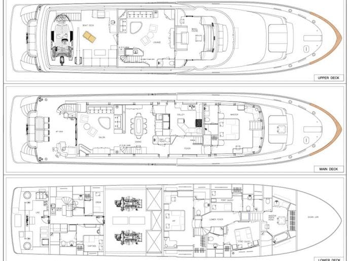 Paragon Yachts has launched a new 108′ tri-deck series, featuring a 24′ beam, high bulwarks, and a shallow 5’2″ draft.