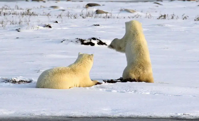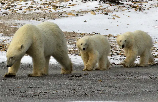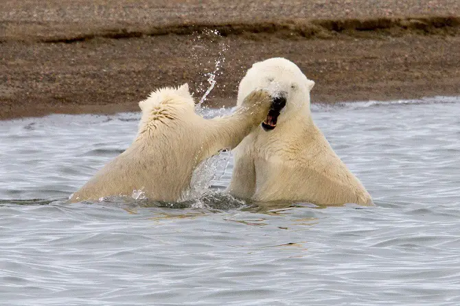 You’ll often see polar bear cubs playing-fight with each other and it’s an extremely lovely sight. Once grown they are usually not hostile unless provoked but can be very dangerous and unpredictable while hungry. Their diet mostly consists of seals so we, lazy penguins, are safe! Below you’ll find the most adorable polar bear cubs!