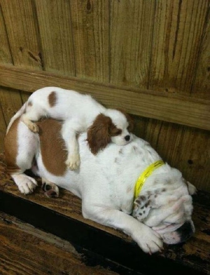 Dogs love to play and run around but what happens after a long exhausting day? Of course they fall asleep from being too tired and tend to relax for a while. However, what’s funny is the sleeping position the puppies end up in.