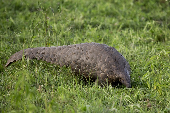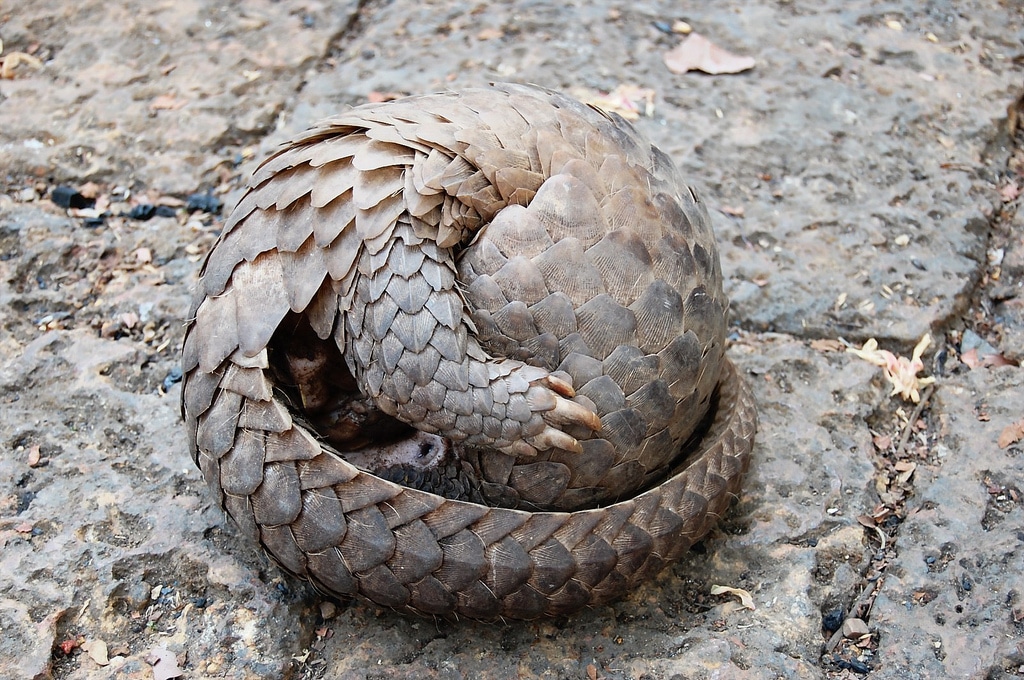 Pangolin are the adorable animals that look like a combination of armadillos and anteaters. They appear to have a scaly shell all over their body and they have very long tongues like anteaters.