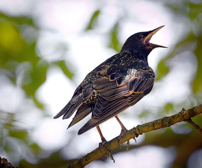 Starlings, birds of the Old World, are one of the most fascinating species of birds due to their unique plumage which is usually black or iridescent with a majestic tint of metallic sheen.