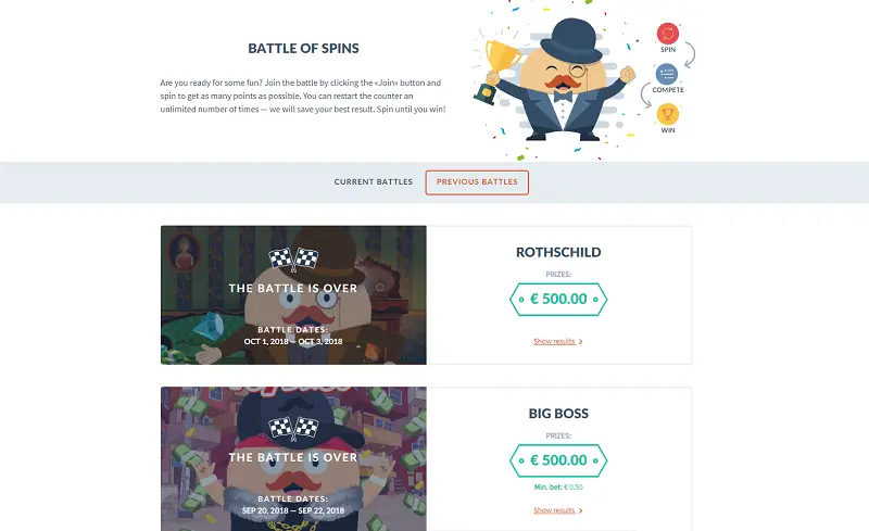 The site is available in 12 languages and is available 24/7. The website also has a good number of promotions. One factor in which Mr. Bet overtakes its competitors is the fact that they have a battle of spins section on their site. This is a special type of event that only happens about twice a month and features high stakes. It is definitely worth adding this section of the website as a favorite, if you decide to register and play on the site constantly.