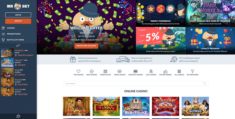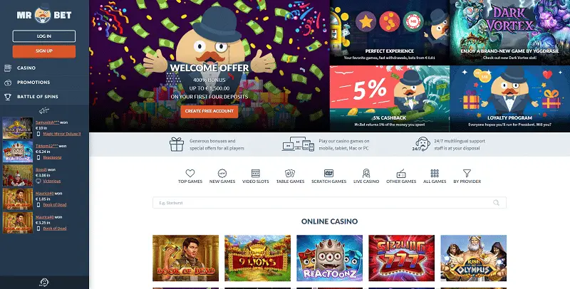 All in all, we like Mr. Bet.Sign up today and see if you like it or not.