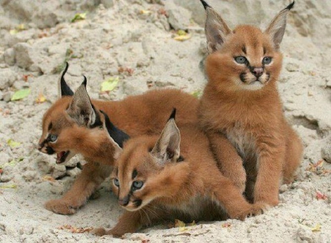 The cute caracals and their even more adorable kittens are well known for their long ears that have a black tuft on their back. For some, this characteristic makes them seem more fierce, but for others such as their babies, it makes them look so lovely. They are truly very gorgeous animals.