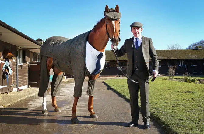 It’s highly unlikely that you’ve ever seen a horse in a suit before. Even more unlikely that you’ve seen one in a tweed suit! Needless to say it looks incredibly dashing!