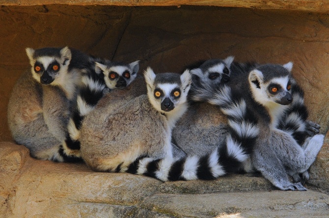 Lemurs are native to Madagascar and ring tailed lemurs probably the most absolutely adorable of the bunch! Just look at their fluffy tail and their little faces! Below you’ll find some of the cutest in groups of alone.