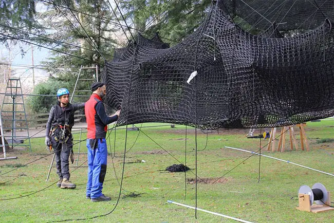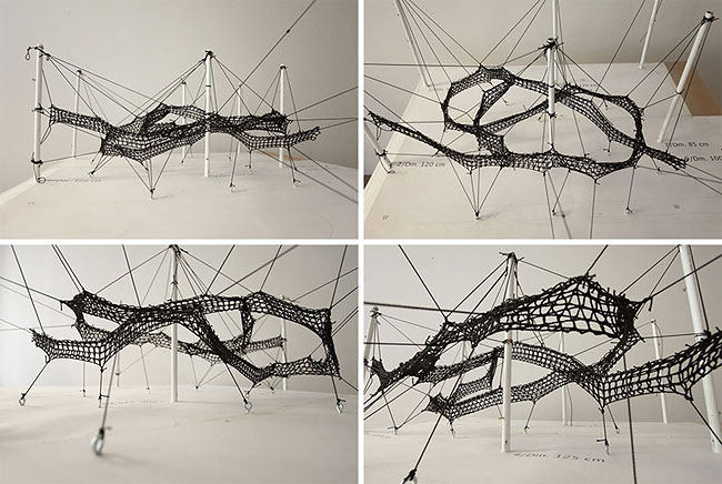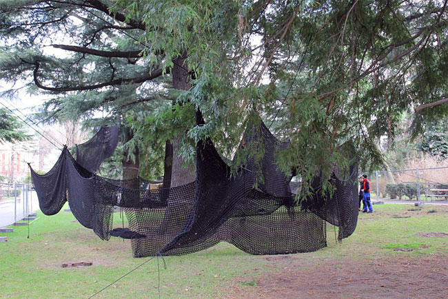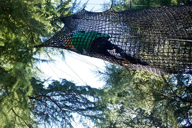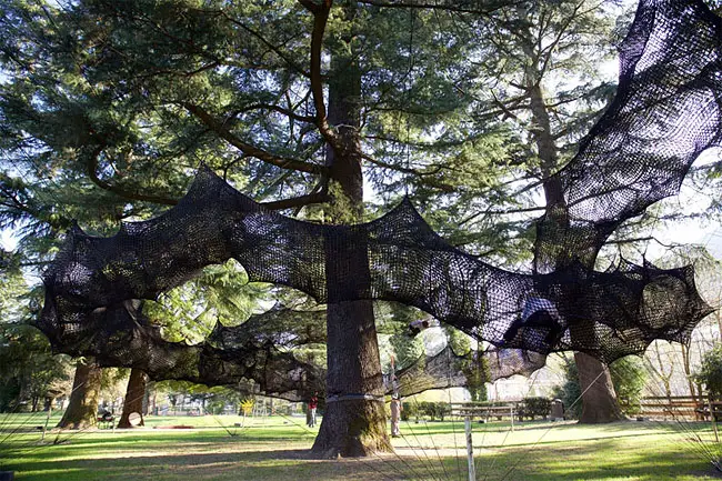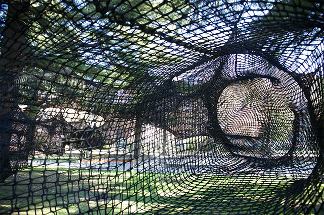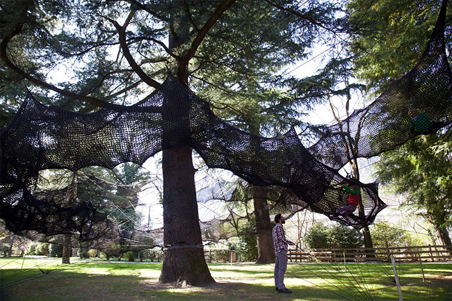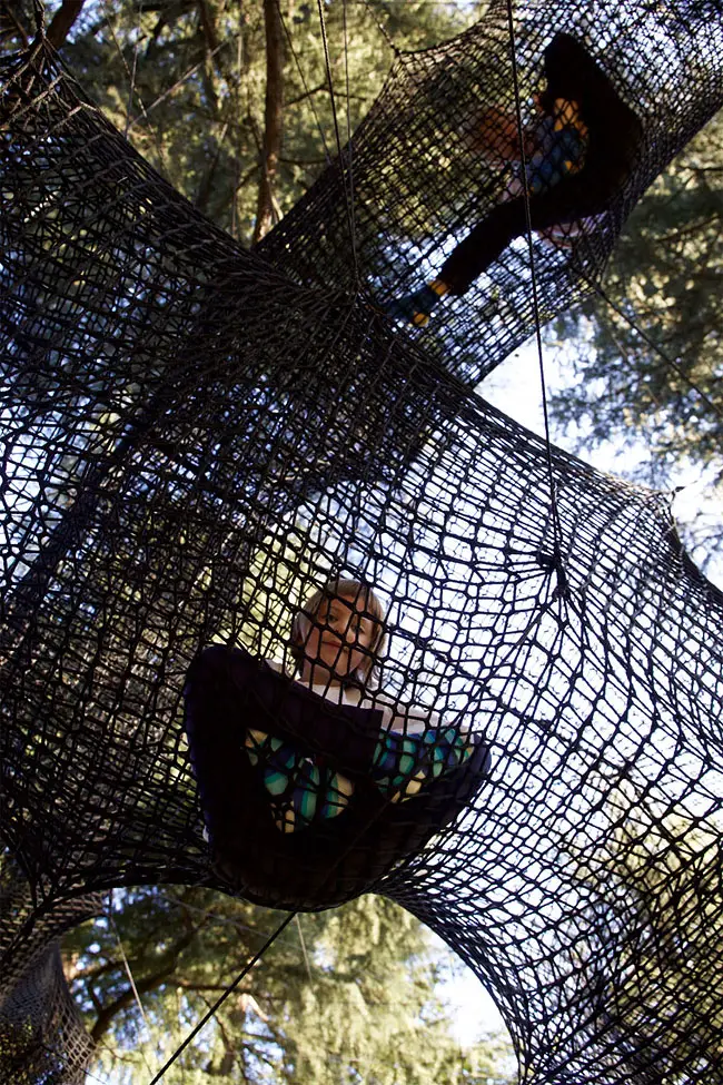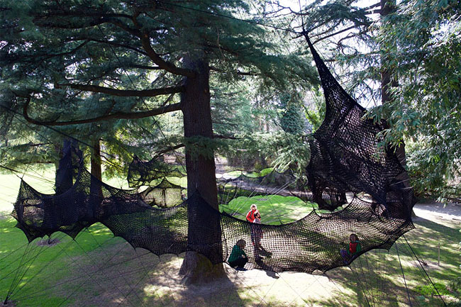 The result is a tube-like netted structure that lets you climb through the trees.