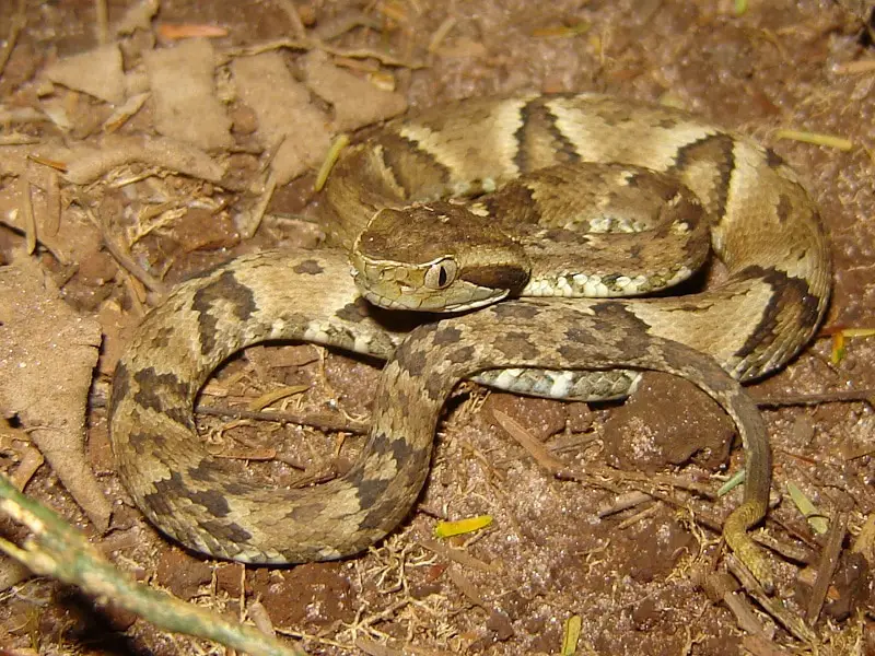 It is considered one of the deadliest snakes because it has killed more humans than any other snakes combined. Although the snake’s venom is lethal in only less than 10% of its victims, the creature’s aggressiveness does mean reports will always surface each year of it biting people. Their large eyes have deep black vertical pupils and yellowish or golden irises, dotted with small black dots. They are usually crossed by a dark band that continues along the side of the head, gradually widening until it reaches the neck area. On the nape of the neck, 2 oblique bands, also dark, trace an inverted v with the opening towards the neck. Click the next ARROW to see the next image!