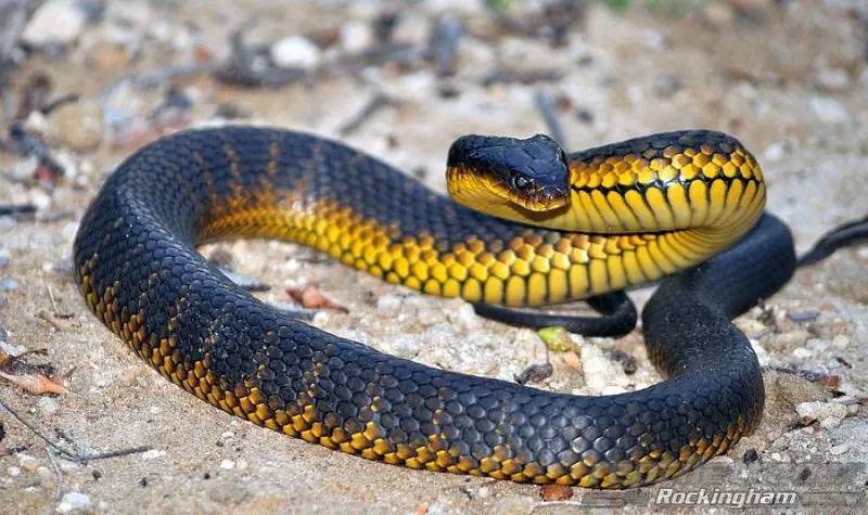 Being fond of termite mounds, this snake is usually found on the ground. Named for its black mouth, this snake is feared for its large size and quickness. That and it carries venom that is fatal for humans. Although it’s known for its aggressive nature, there’s little proof of unprovoked attacks on humans. Plus, it’s responsible for only a few deaths each year. It is a snake whose skin color is dark green or gray on the back and a whitish color on the back. It is called black mamba because the color of the inside of its mouth is bluish black. It is one of the longest snakes in all of Africa, being the average length of an adult specimen about 2.5 meters and can reach up to 4.5 meters. Click the next ARROW to see the next image!