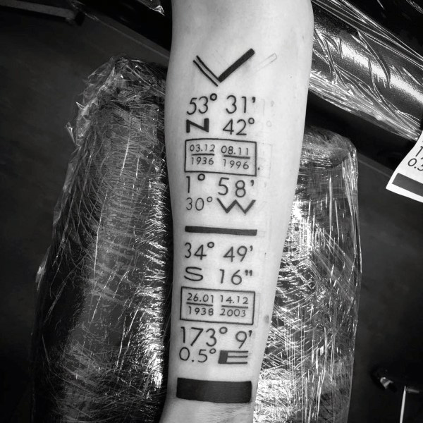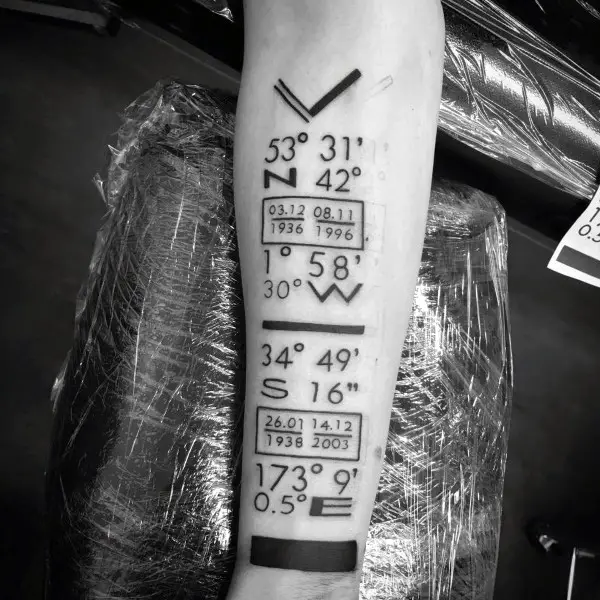 Following up our series of top tattoos for men, today we’re taking a look at a very specific niche of tattoos. Coordinate tattoos. What are they and what do they stand for? Well it’s different and unique for and to every person. Some of them feature a series of numbers that represent a date, a location or a event of great importance for them. Sometimes they feature less numbers and more design, such as compasses, map etc. Coordinate designs can also be small and unique tattoos.