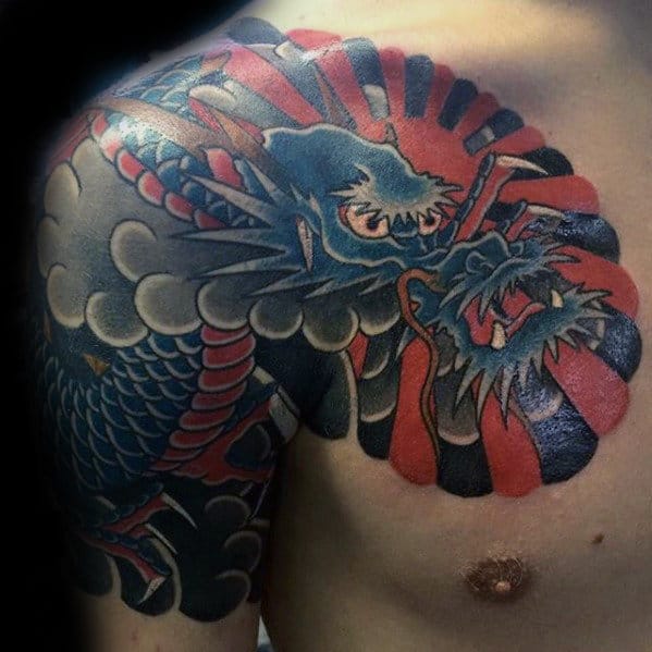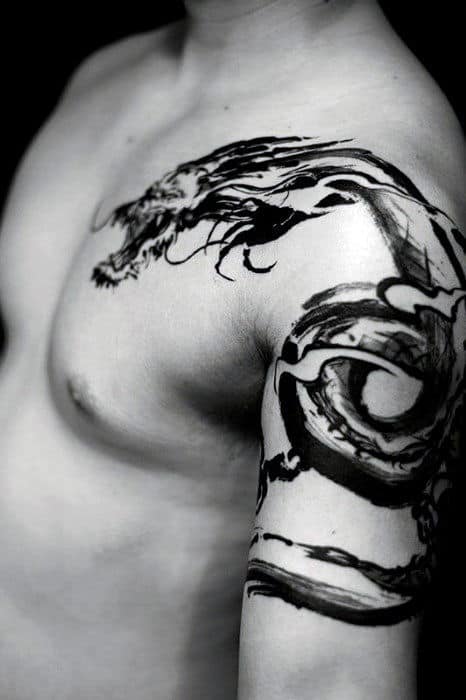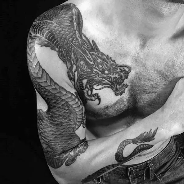 In the same way, for both cultures the image of the dragon symbolizes a faithful guardian of treasures and although it may not seem like it, its true meaning is centered here. Well, the weapon that he uses to protect that which has so much value and is desired is nothing more than fears and that inner shadow that nobody wants to accept from himself, in this way the dragon becomes the deepest fears of a person. Here are the best dragon shoulder tattoos for men!