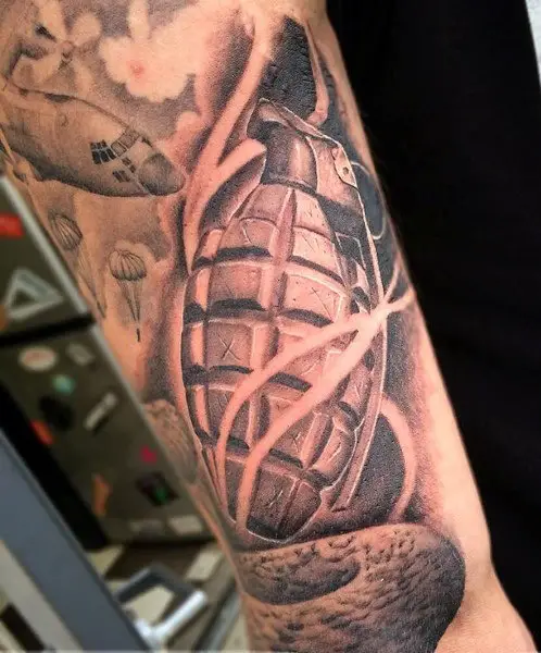 Without further delay, let’s take a look at the best grenade tattoos for men.