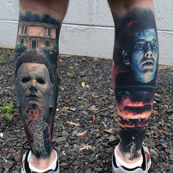 hyper-realistic-back-of-leg-mens-horror-themed-tattoos