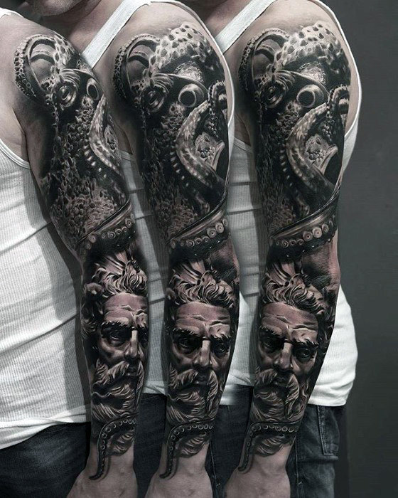 hyper-realistic-octopus-with-greek-god-mens-sleeve-tattoo