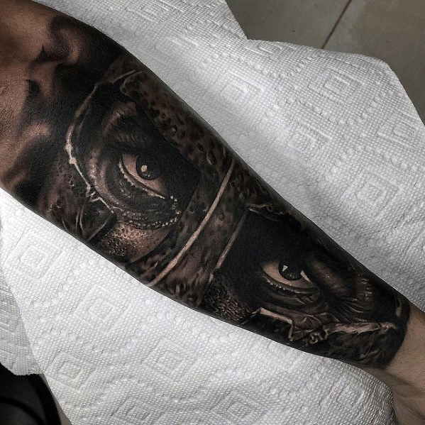 spartan-portrait-hyper-realistic-mens-forearm-sleeve-tattoo