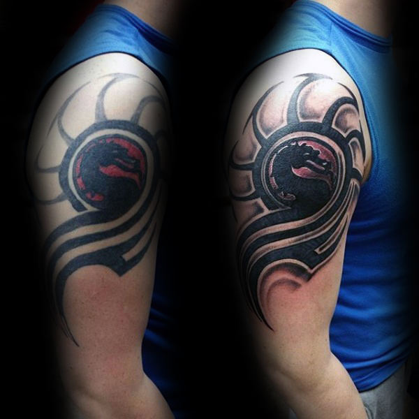 mortal-kombat-logo-mens-upper-arm-tattoos