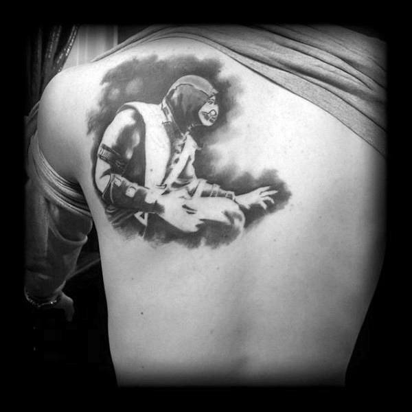 negative-space-guys-mortal-kombat-watercolor-black-and-grey-back-tattoos
