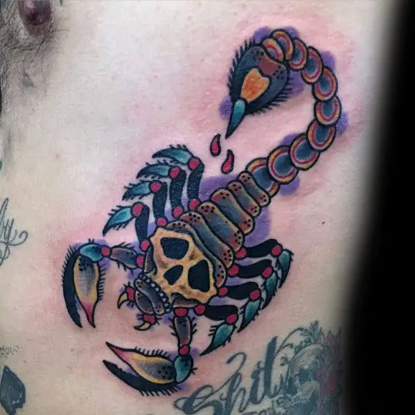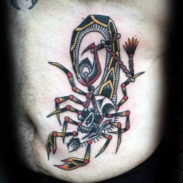 mens-old-school-traditional-scorpion-rib-cage-side-skull-tattoo