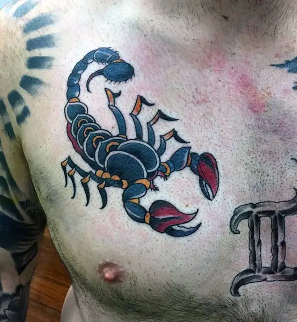 mens-old-school-upper-chest-traditional-scorpion-tattoo