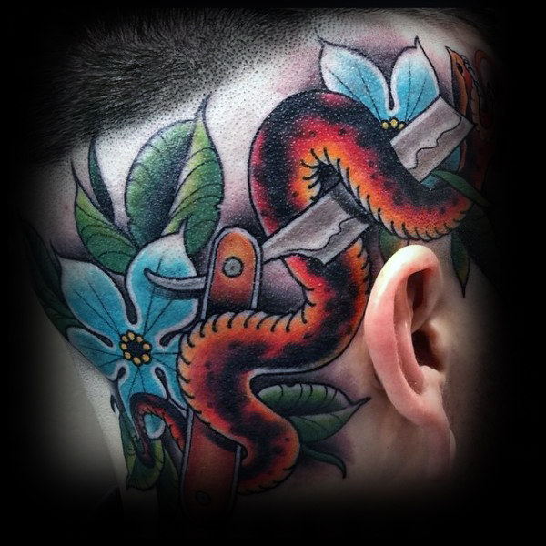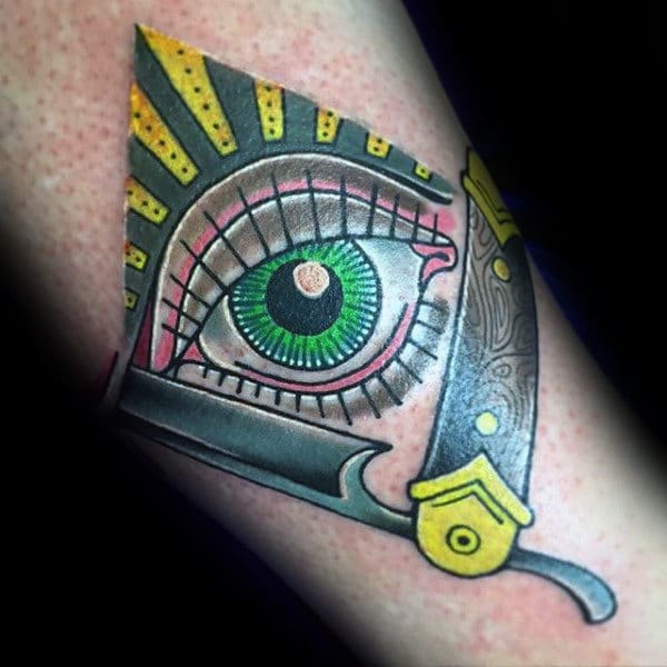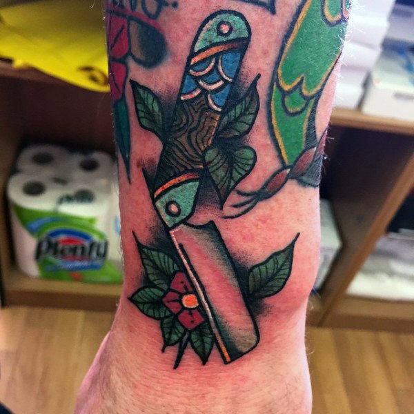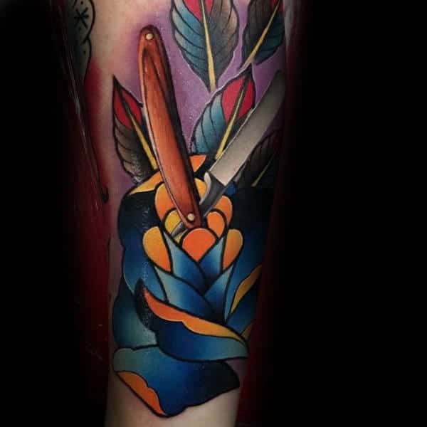 Sharp objects have also been protagonists of a stylish tattoo. One of the most requested by tattoo fans is razors. Although this design is highly controversial, many people have given it more positive meanings. All objects that cause damage or injury are viewed in a negative way even if they have a positive use, as is the case with razors. This has gone from being a simple everyday object with which gentlemen shave their beards to being an object related to violence and death. But if you are a daring person who doesn’t mind comments, you can choose this design.