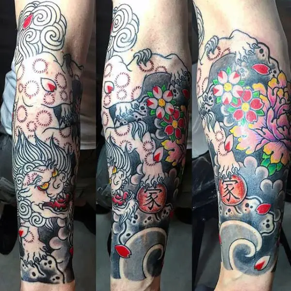 Colorful Japan Inspired Flower Tattoo Designs