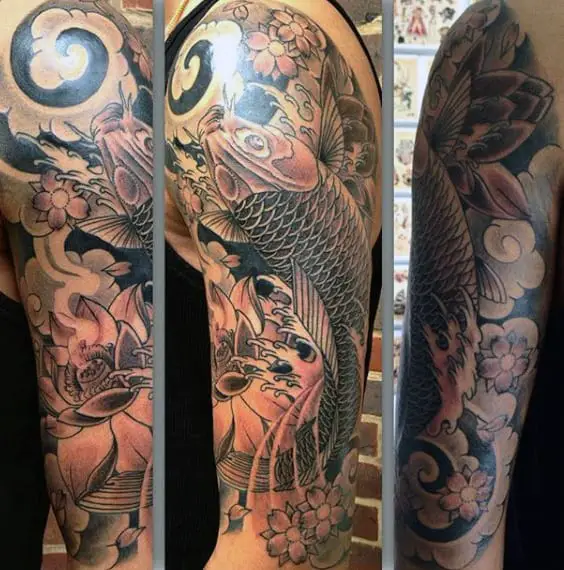 Black and Gray Japan Inspired Flower Tattoo Designs