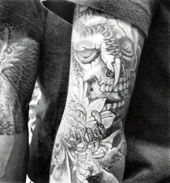 Flower tattoos can be done all over the body although they are most common in full and half sleeve tattoos. Also, often they complement a different design instead of being the main focus of the tattoo. It is a misconception to connect flowers with something feminine. As you’ll seen in the following photos flowers can be used very creatively to enhance male tattoos without taking anything away from their masculinity.