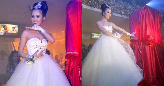 Among these is the ‘Bach Ngoc Xiem Y’ which has more than 95 rubies and 200 diamonds for a bride who can afford £93,000 in Hanoi, Vietnam.