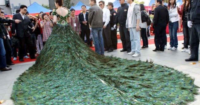 Alongside this is an excellent creation by Vera Wang known as the ‘Peacock Feather’ wedding gown which consists of thousands of peacock feathers and cost £1.2 million.